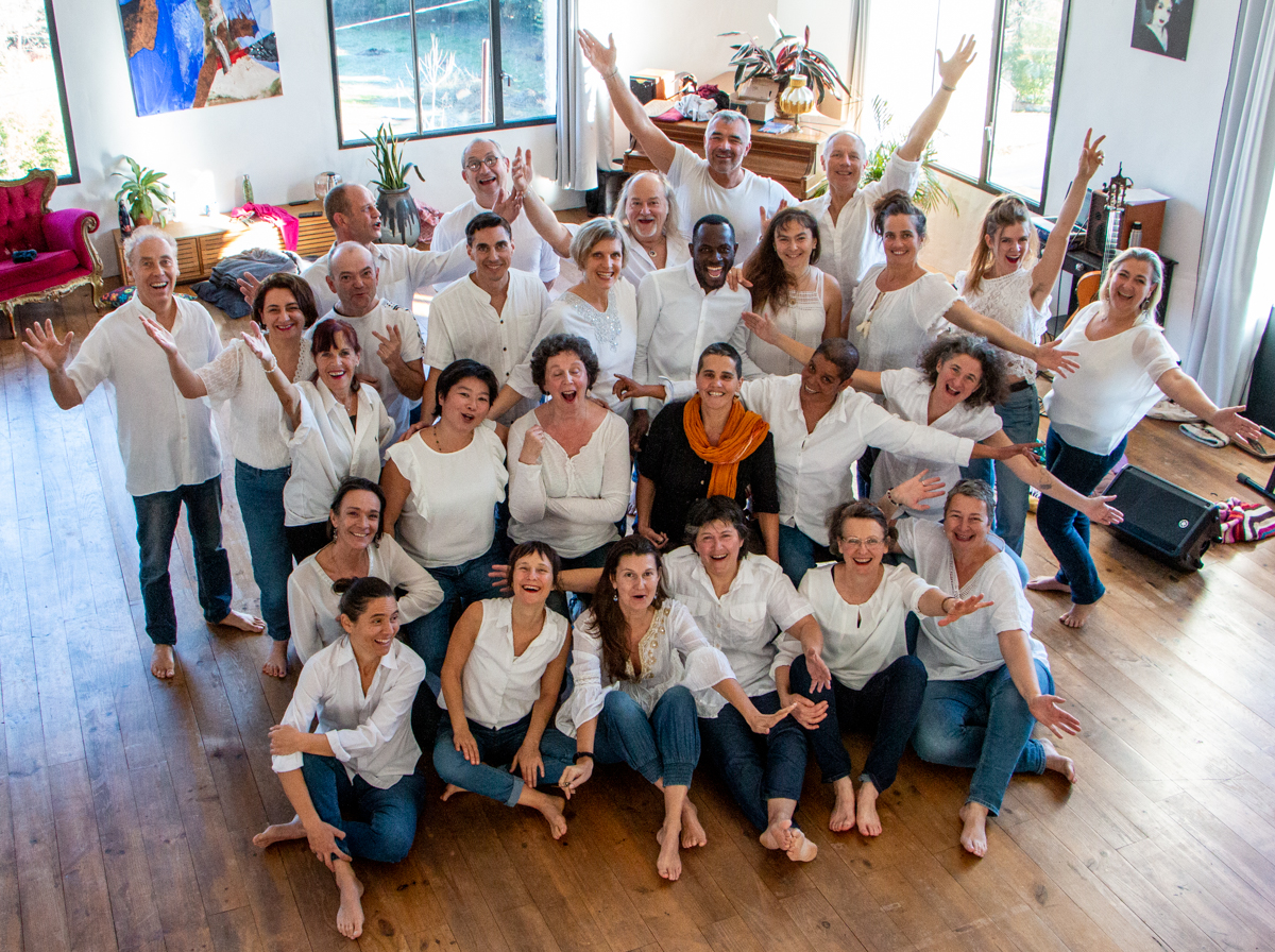 Je m'appuie beaucoup sur la force du groupe, tout en invitant chacun à être d'instant en instant au plus près de Soi, en intégrant quelques notions autour du yoga, de l'aïkido et de la méditation, toutes ces pratiques qui accompagnent ma vie au quotidien et soutiennent ma voix depuis de nombreuses années maintenant.