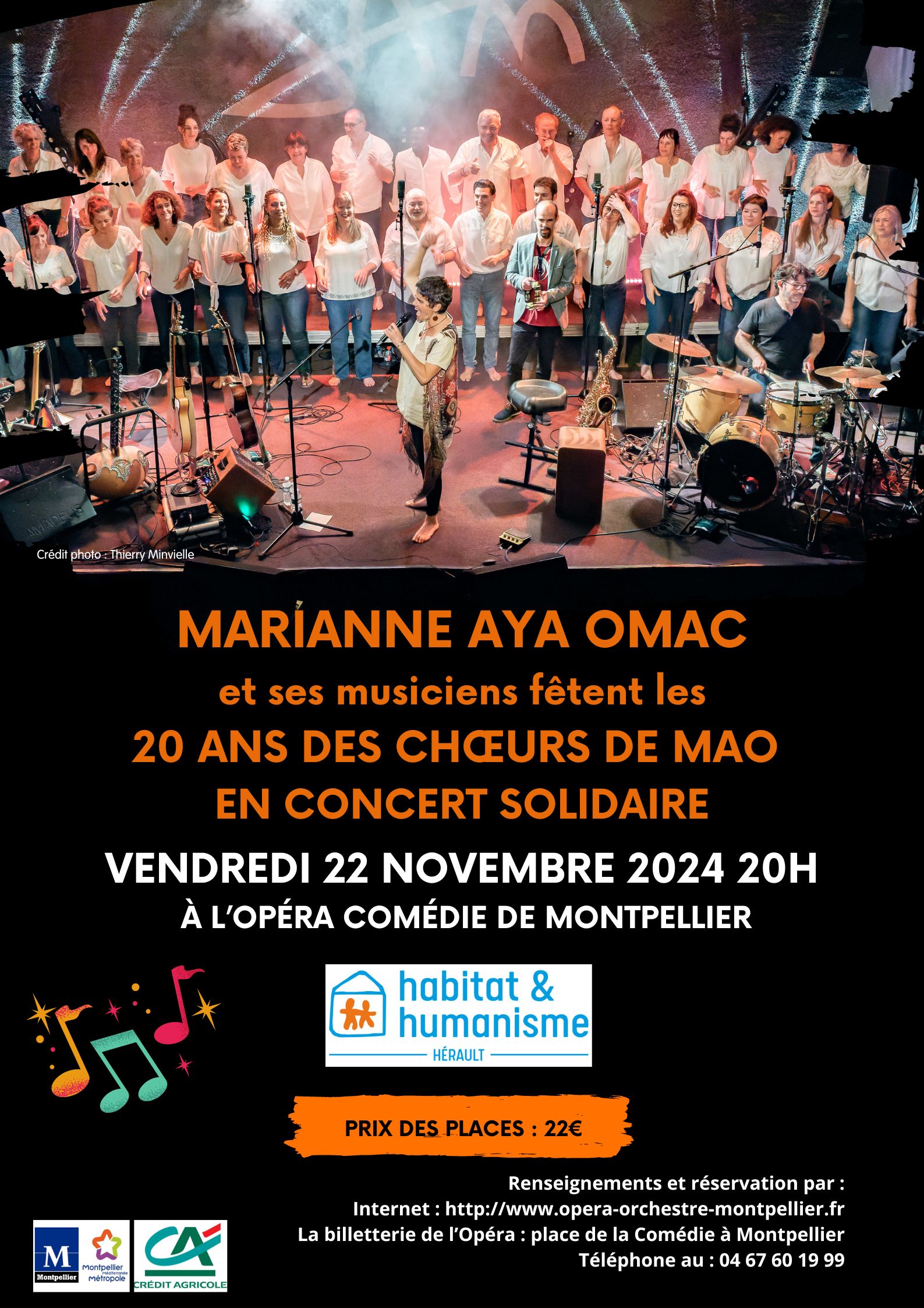 Enregistré en novembre 2024 à l'Opéra Comédie de Montpellier, lors du concert solidaire organisé par Habitat et Humanisme Hérault, cet album live est un concentré des meilleures compositions de Gospel de Marianne Aya Omac.