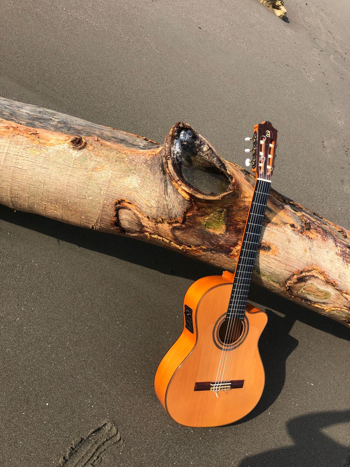 Après 5 années de piano classique et la découverte de JOAN BAEZ, elle commence la guitare à 14 ans et ne lâchera plus jamais cet instrument de prédilection.